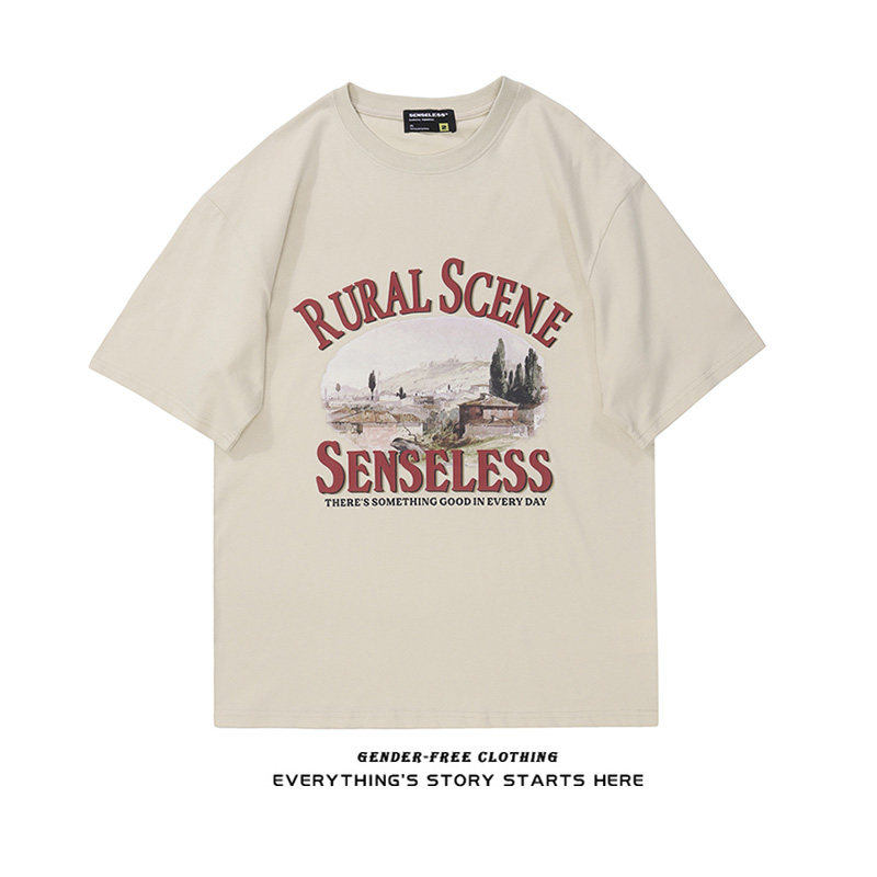 Ретро футболка с коротким рукавом с круглым воротником, летняя одежда, европейский стиль, свободный крой