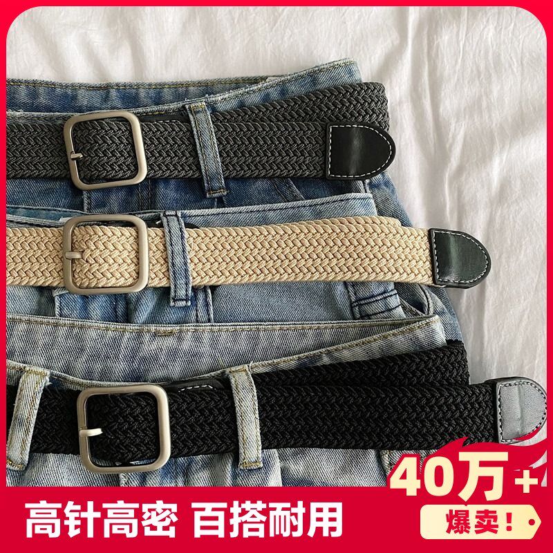 Мужской ремень, джинсовые штаны, тканевая трикотажная булавка, женский стиль