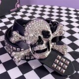 Черно-белый ремень с принтом черепа, универсальный ремень для субкультуры y2k, горячая девушка Abby Goth