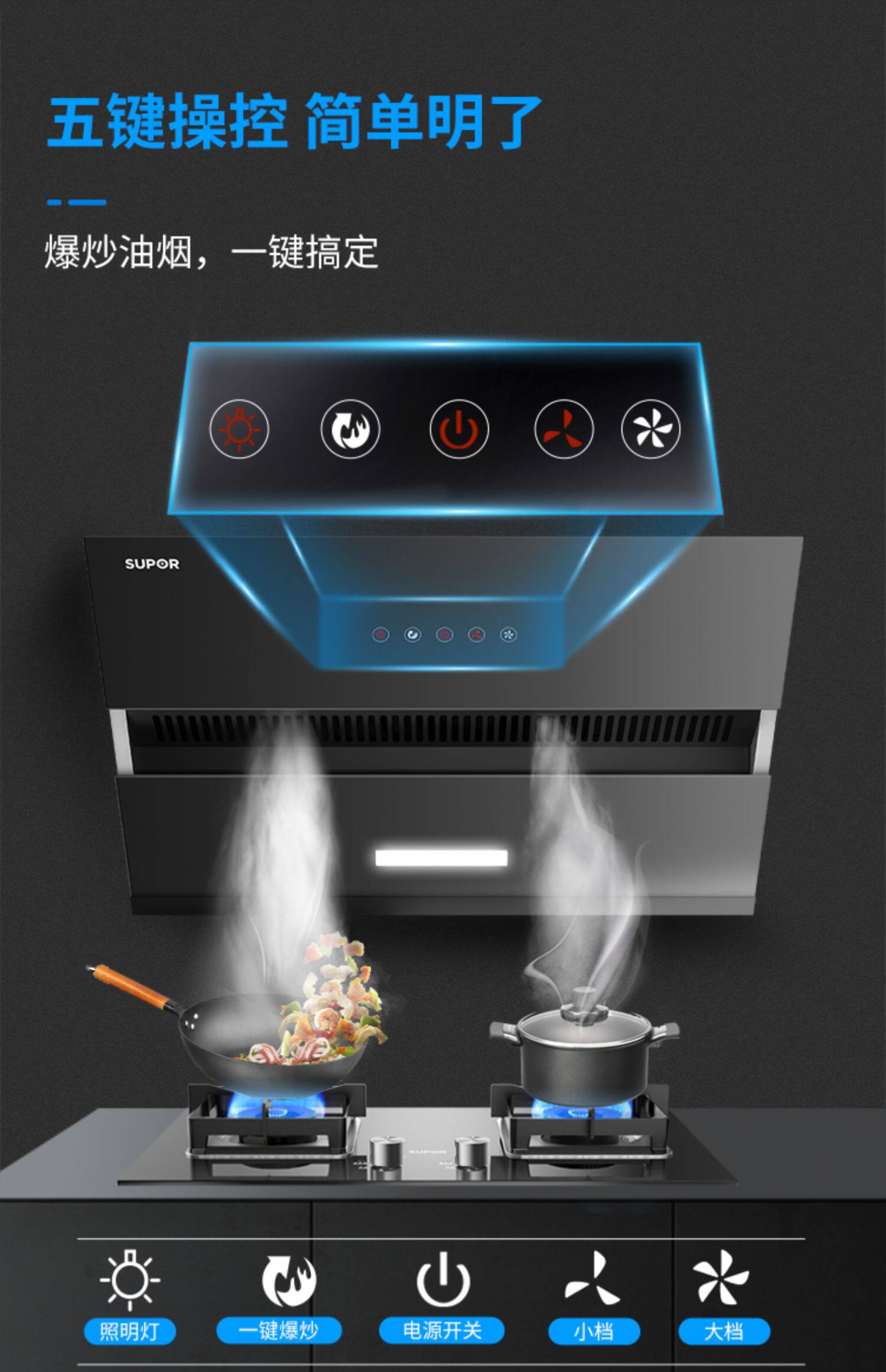 SUPOR MJ23 Дымовая плита Установка водонагревателя капюшонной газовой плиты Дезинфекция шкаф на кухня три -кухня