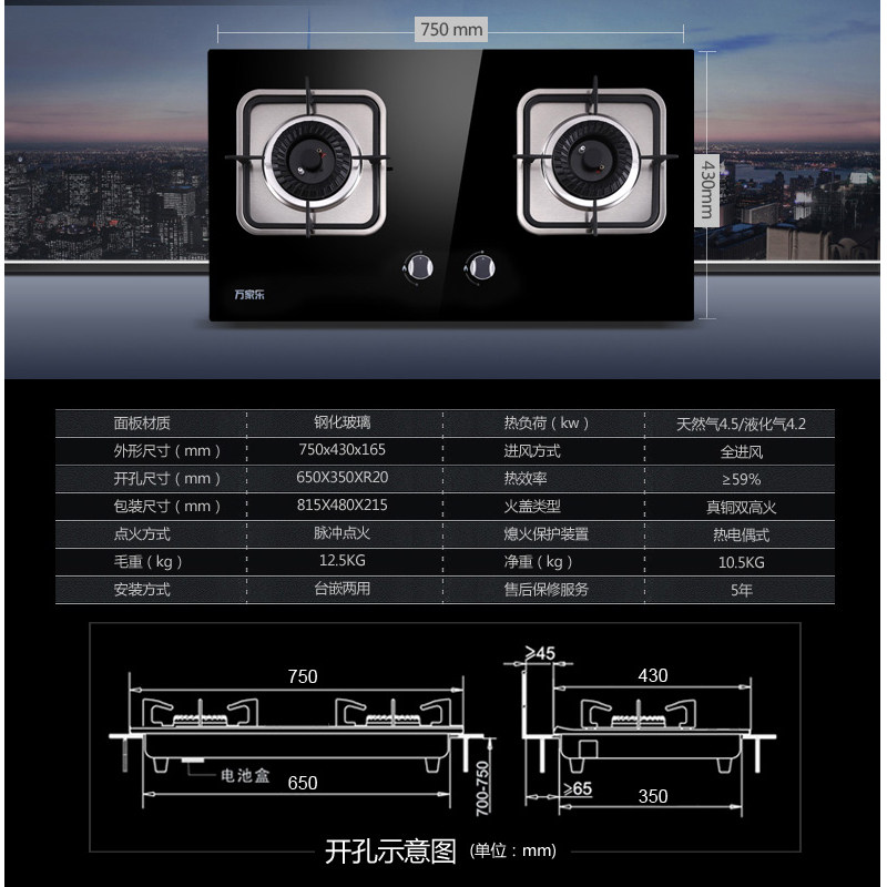 Wanjiale DG05+K461B Fassem Hick закрежец газовой плита черная боковая кухня 2 -кухня набор табачной плиты