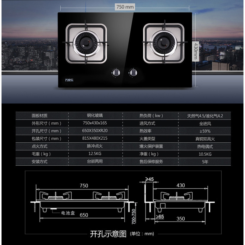 Wanjiale DG16 (B)+K461B+12T1 Диапазон газовая плита Дымовая плита Установите сжиженный газ природного газа сжиженным газом