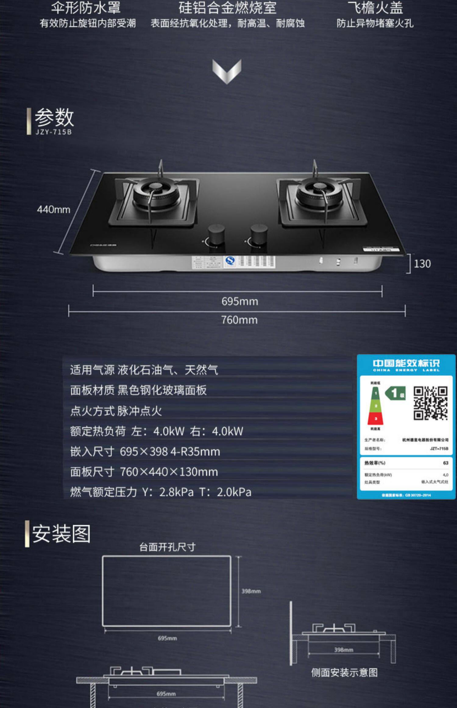 Deyi 825t+715b Fassemid Higm Машиная газовая плита встроенная природная газа Европейская домохозяйство Большое всасывание
