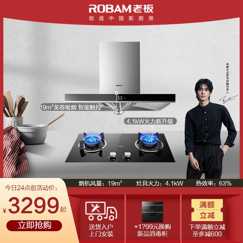 Robam/老板 67x2+30b0 Большой всасывающий капюшон накачивающая газовая плита для дымовой плиты
