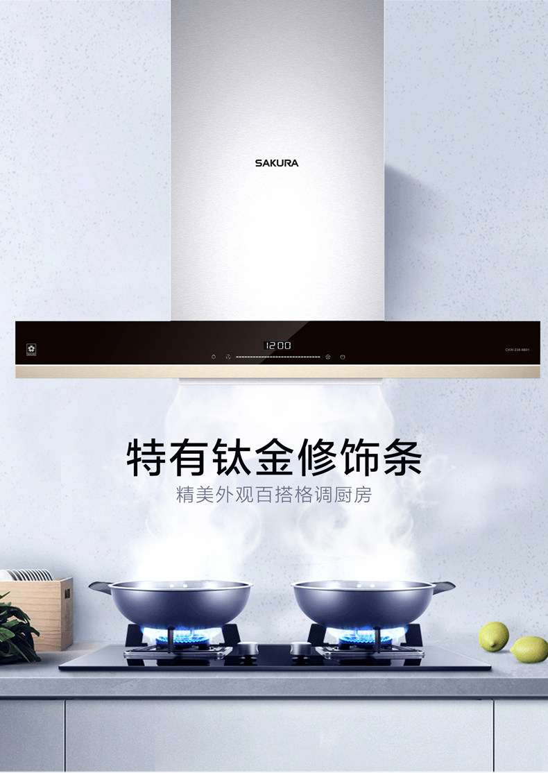 Sakura Cherry Blossom 8B01+BGB1T Большой всасывающий нефтяной капюшон, газовая плита, набор газовой плиты