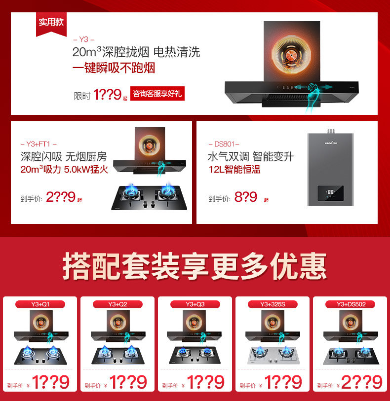 Y3 Три -купольный набор из газовой плиты Schndry Top Susction Hoods Set для сигарет -сигарет набор комбинации комбинация официальный флагманский магазин