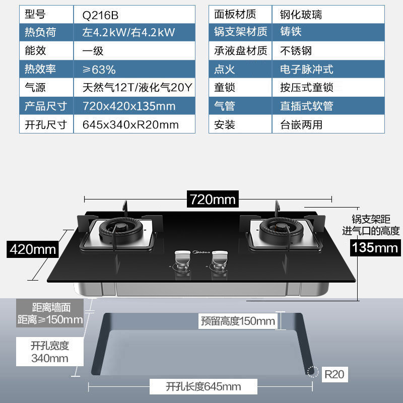 Сторона -строка с двойной моторной ассортиментом, газовая плита, настенная настенная настенная кухня дома кухня дома