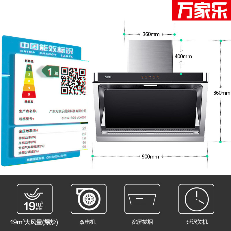 Wanjiale Ax051 Сторонний всасывающий капюшон, газовая плита газовая плита с горячей водой.