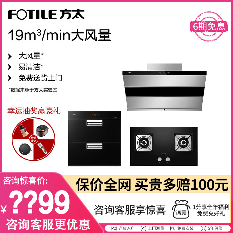 Fangtai jq26ts+ht8be+j45es с боковой всасыванием вытяжки с газовой плитой пакет дымовая плита с тремя частями встроенные