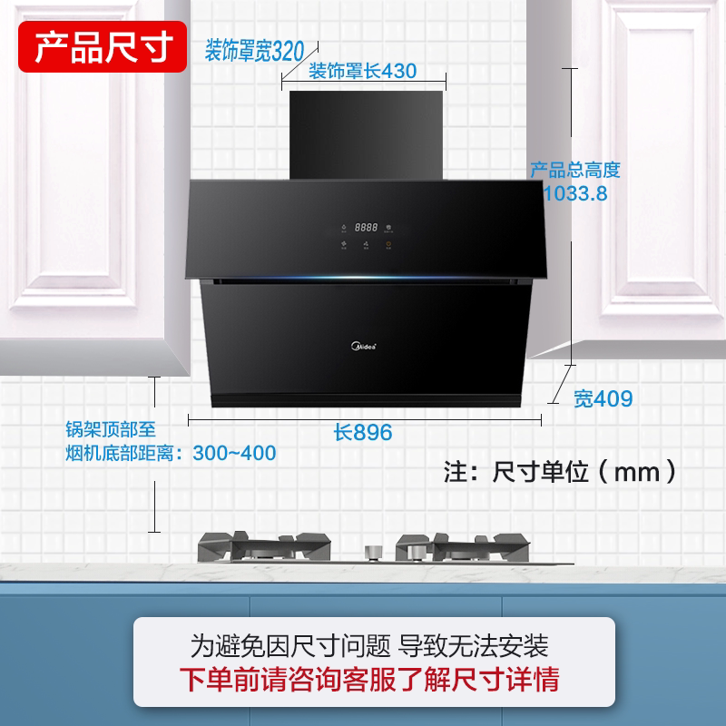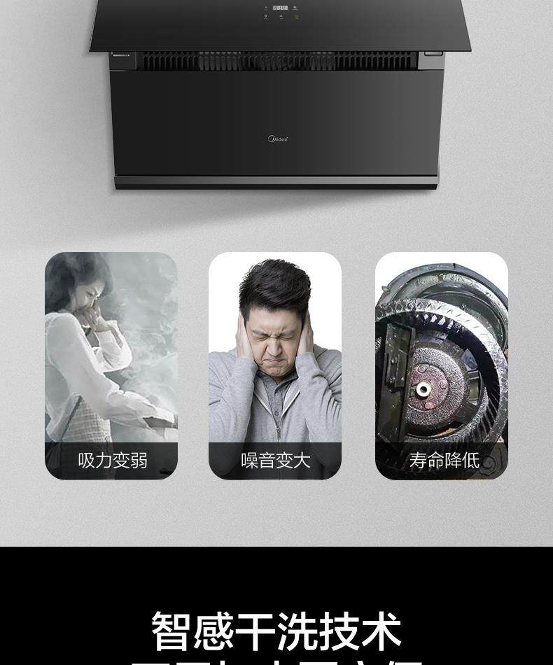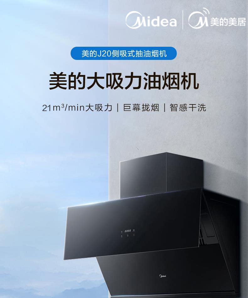 Midea J20 боковой всасывающий капюшон сжигает газовая плита костюма Smart Home Appliance Set Set Food Big Sursction Power Self -Cleaning