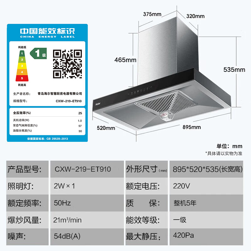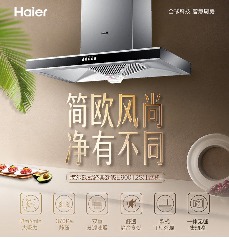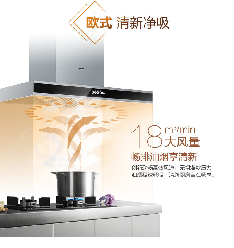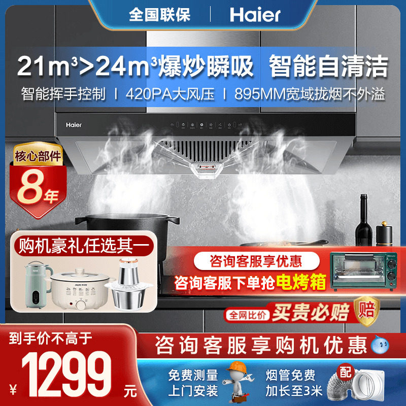 Haier Ding Suction 21M 力 Большой всасывающий вытяжка накачивание капюшков набор газовой плиты набор домашних кухонных ареалов ET910