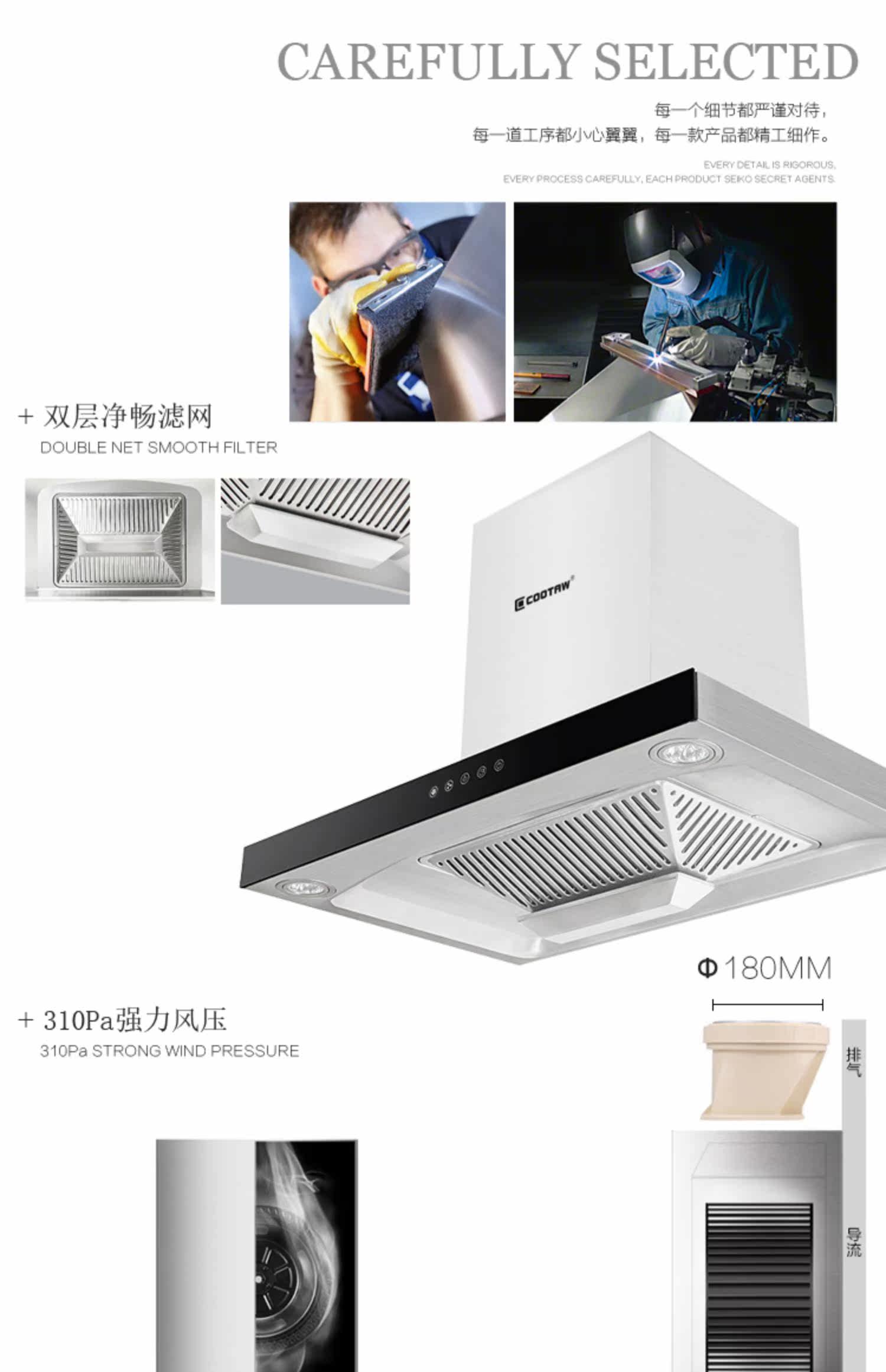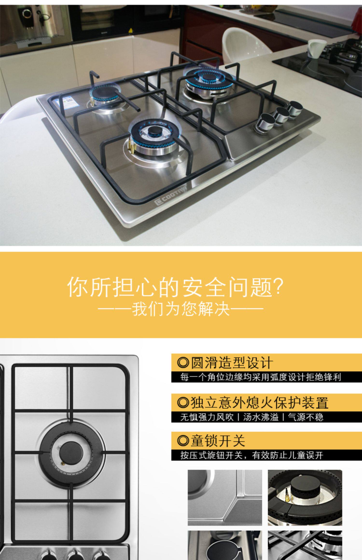 Комбинация дыма COOTAW Трехновая газовая плита Домашняя пожарная плита Европейская капюшонная капюшон
