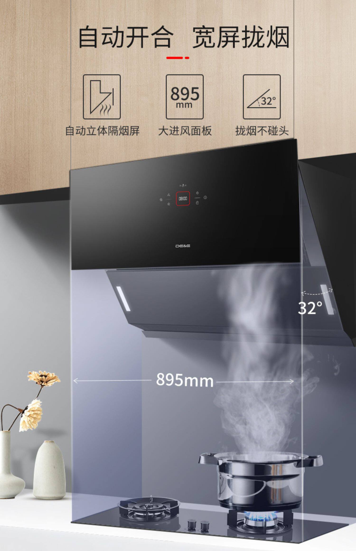 Германский капюшон с газовой плитой, домашняя кухня двух -курительная сигарета, сигареты, боковая всасываемая кухонная посуда