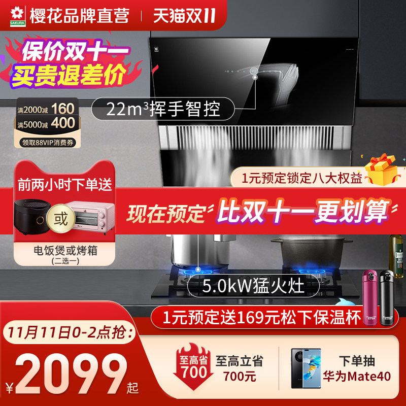 Sakura Sucking Range Hood, набор газовых плитов, дымовая горячая плита горячая выброс кухонная кухня Трехэтажная газовая печь Комбинация