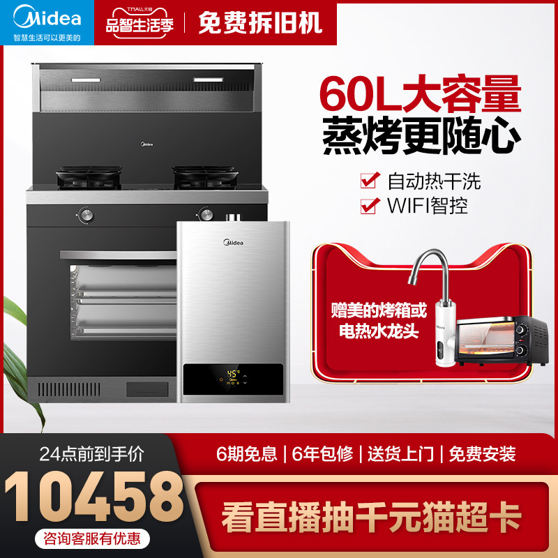 Midea интегрированная печь интегрированная плита -насадка всасывания вытяжки с капюшоном с газовой плитой на пару набор обогревателей горячей воды Установка Smart Home Appliance