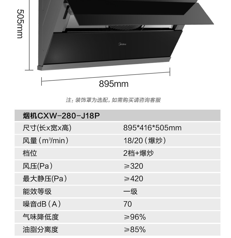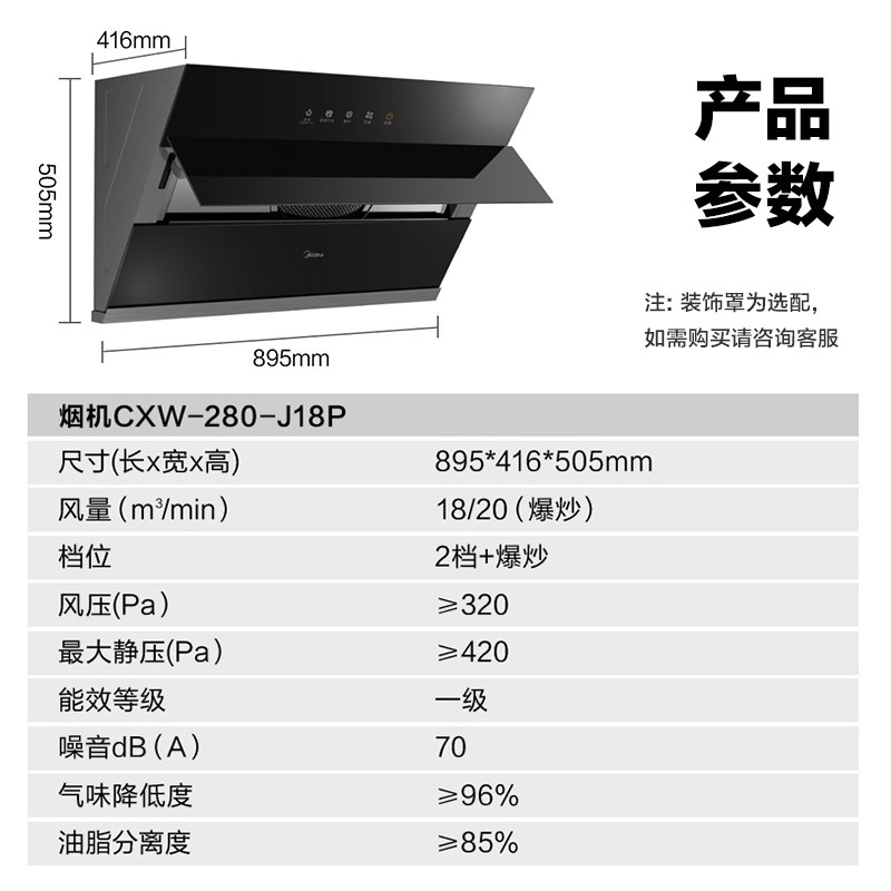 Midea J18p Элемент вытяжной плита набор кухни Home Self -Cleaning Hood Set Set Smart Home Appliance