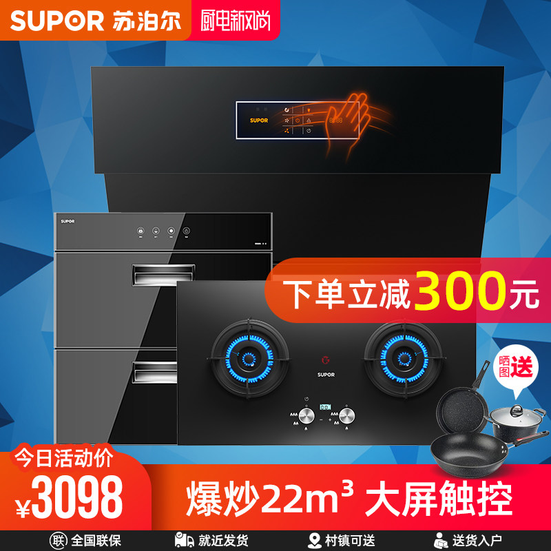 SUPOR DJ9+Q8+303 Кухня Трехнопная кухонная плита с сигаретами, капюшоном, газовой плитой газовой плиты Дезинфекция