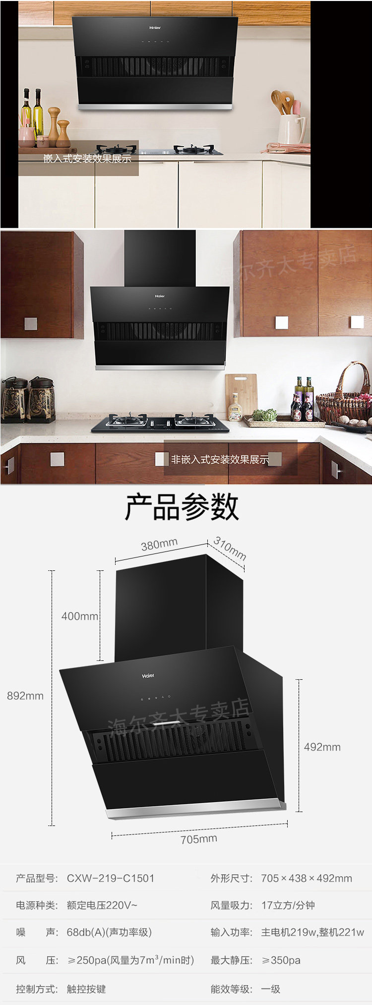 Haier's Side Suctive Hood Hod Home Touch Key Key Malt Dizer Big Sursction Kitchen Special CXW-219-C1501