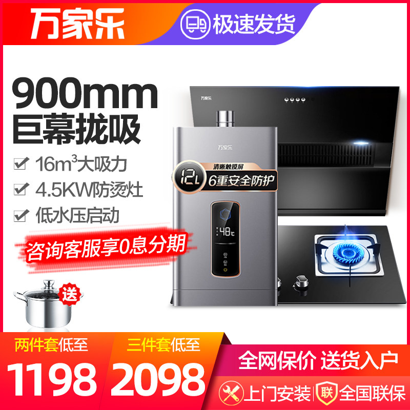 Wanjiale AL031 Сторонние всасывающие вытяжки с большим всасывающим дымом Комбинированный набор водонагревателей домашний газовый набор
