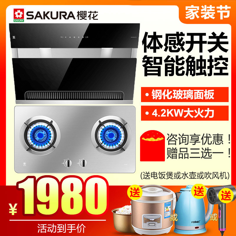 Sakura Cherry Blossom 2701+BGZ01 боковой всасывающий капюшон, газовая плита набор пилки Комбинирование блюд с большой всасывающей мощностью