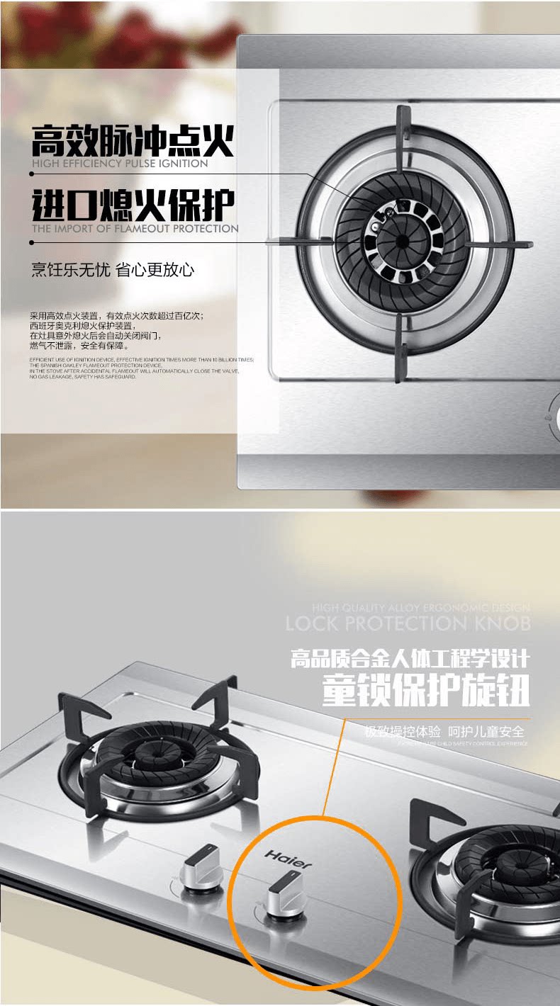 Haier Газовая плита из нержавеющей стали природная газа.