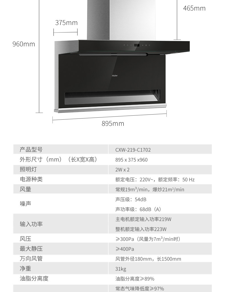 Haier 7 -форма Бесплатная очистка вытяжной плита всасывание Большой всасывающий капюшон вытяжной машины всасывание всасывание C1702