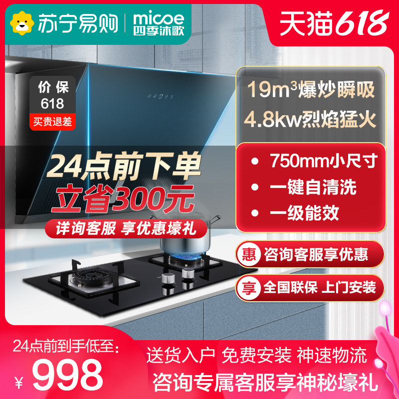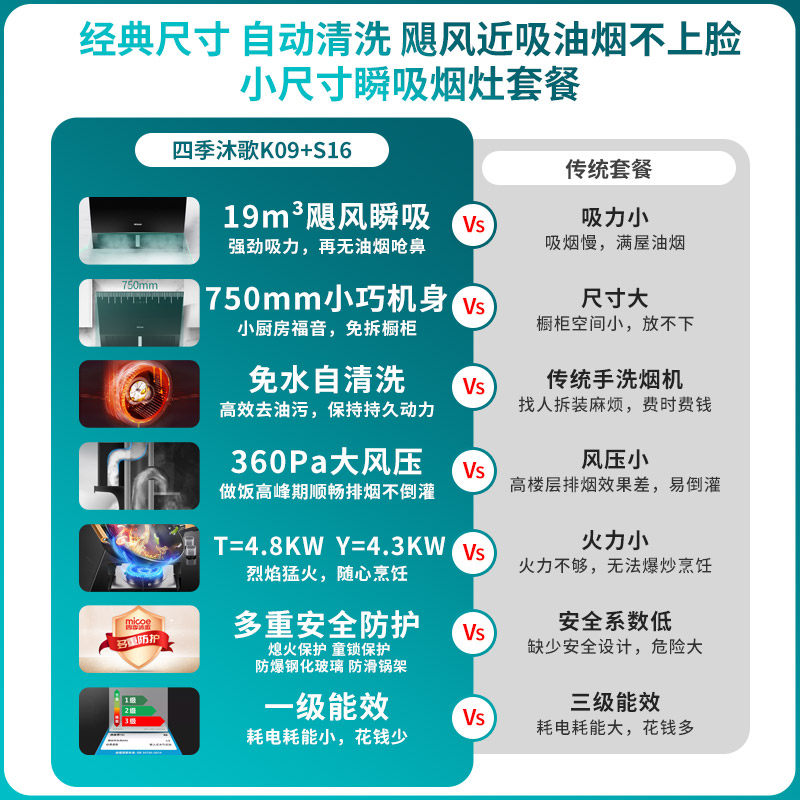 四季沐歌 K09+S16 Сосание капюшонной газовой плиты костюмы костюмы для всасывающей плита для вытяжкой всасываемость дома для дома