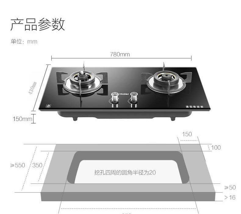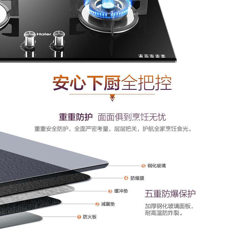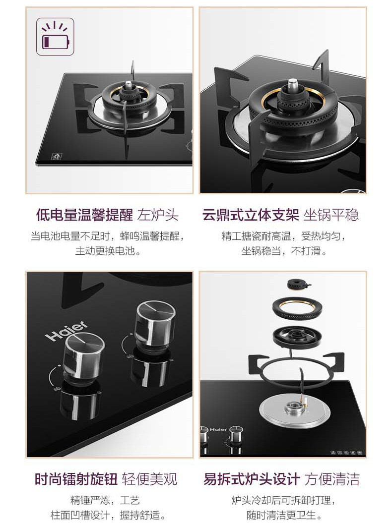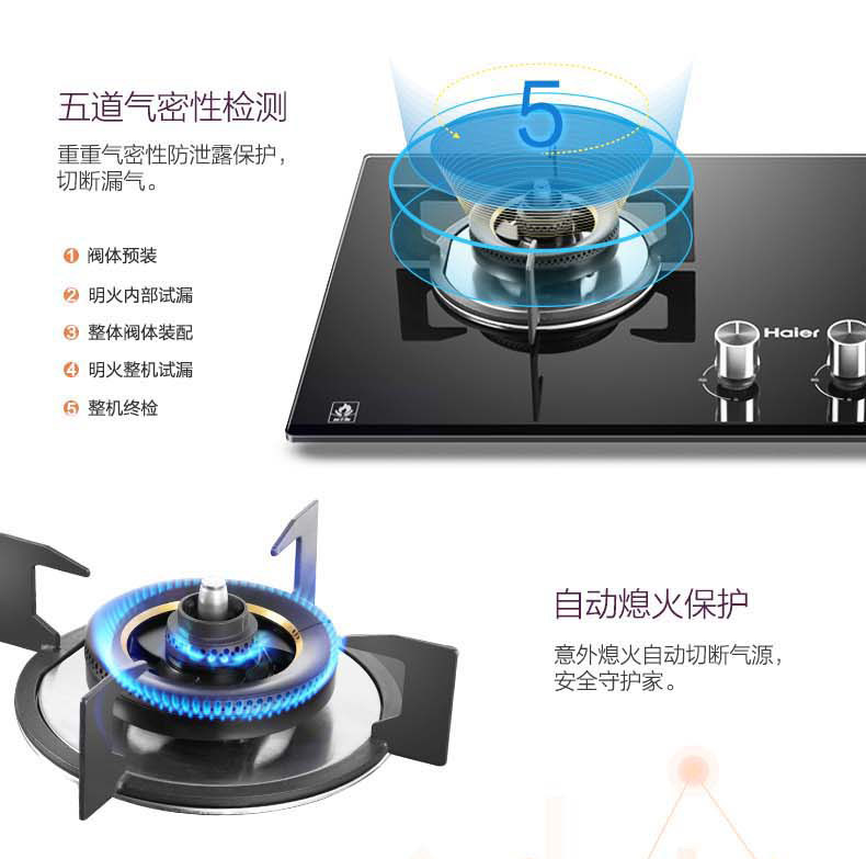 Haier Intelligent Fire Dry Gurning Gas Plave 4,5 кВт встроенная домохозяйственная двойная плита стальная стеклянная плита QHA93C
