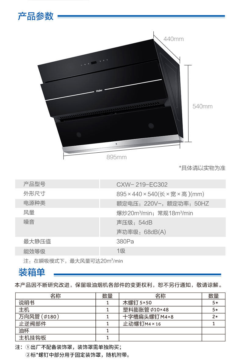 Haier EC302+QE5B0 Большой всасывающий капюшон капюшон накачан