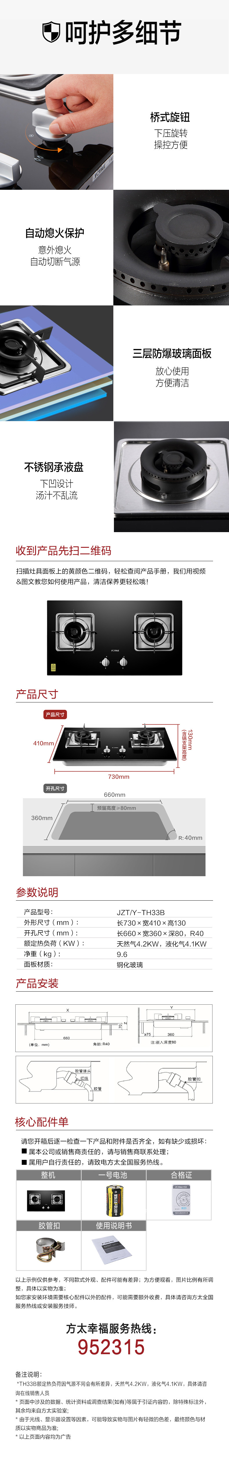 Fangtai EH36H+TH33B Top Susction Daring Hood Газовая газовая плита газовая плита Set Ead Двойное костюм