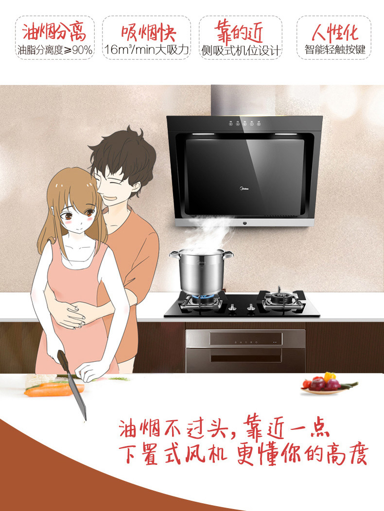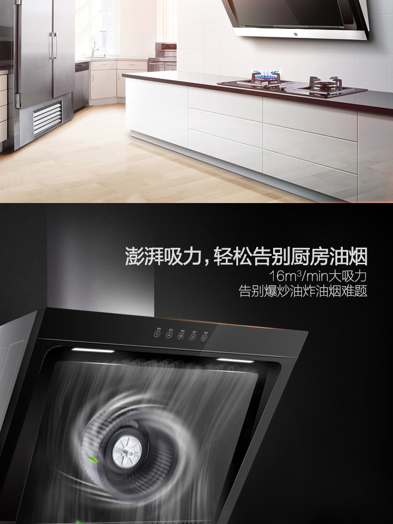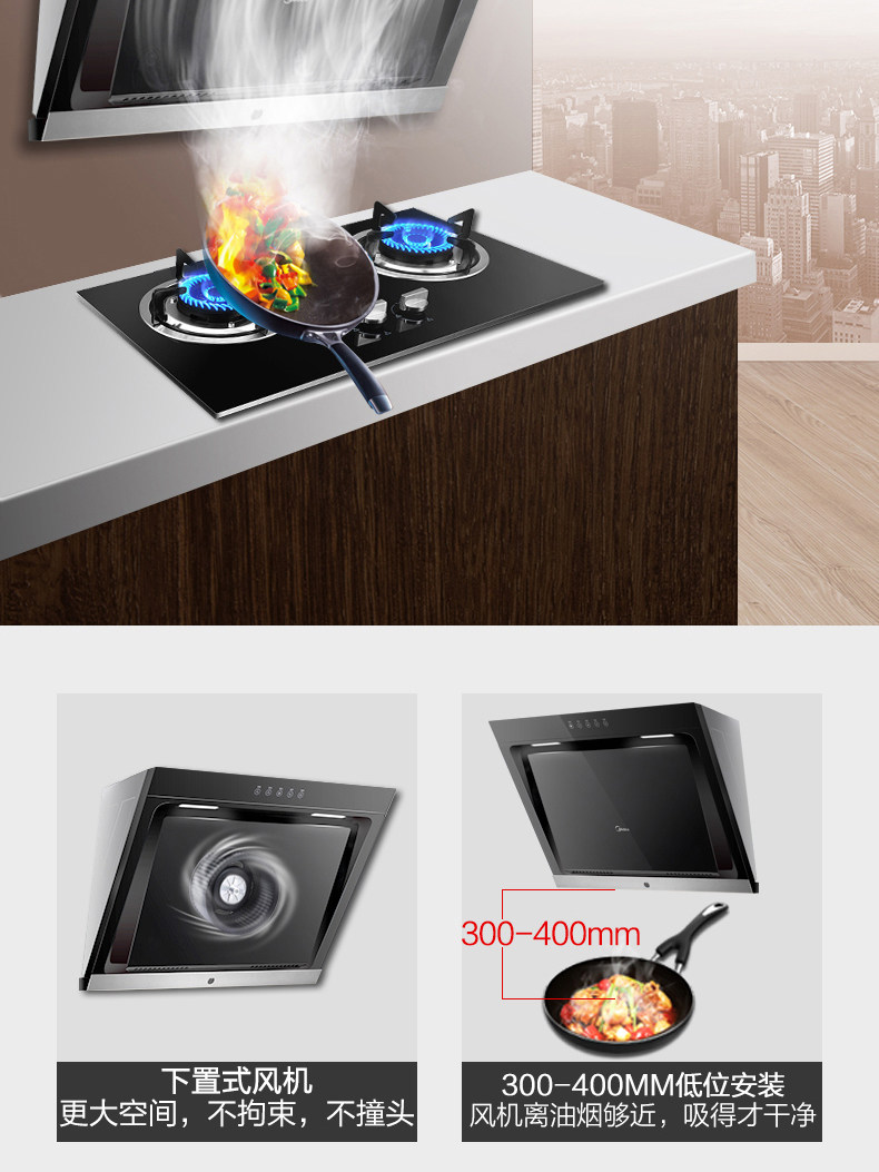 Капюшон с боковой всасыванием, газовая плита, дым, горячая кухня, три -четырехэтапный набор из четырех наборов водонагревателя