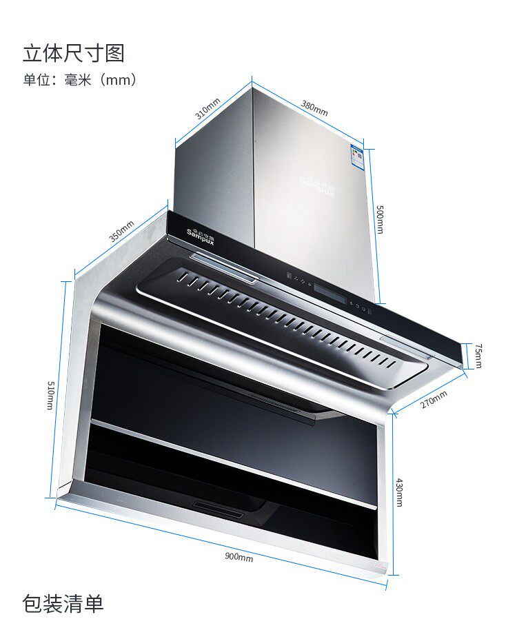 Sangpu Range Hood Top Bilateral 7 -образный домохозяйственный всасывание Бесплатное всасывание.