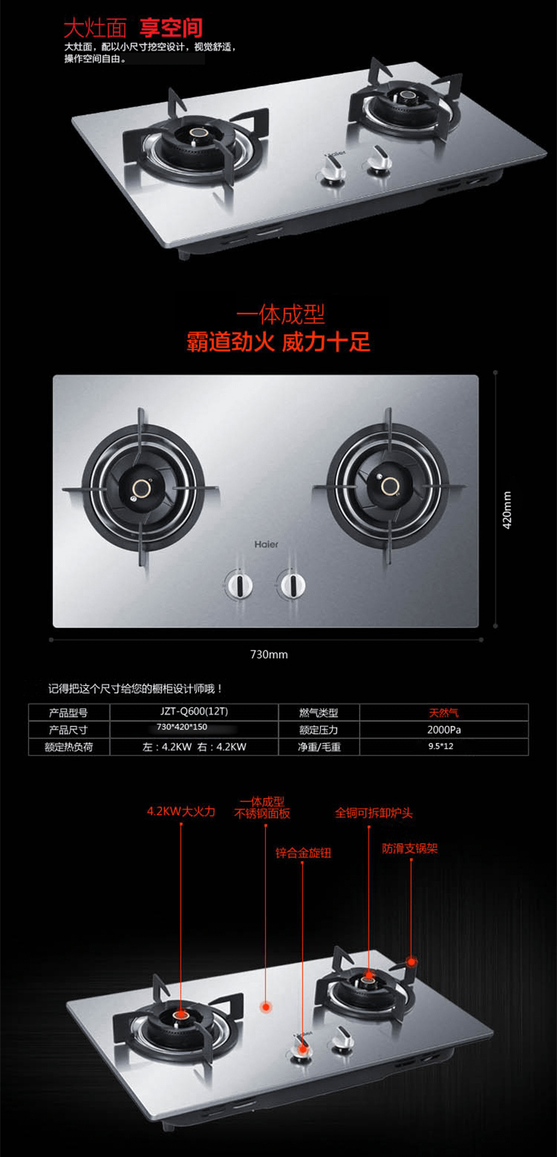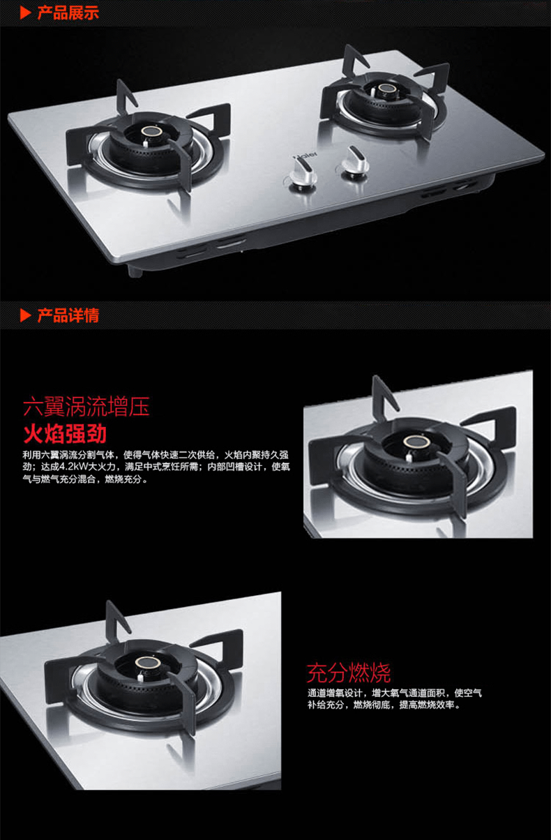 Haier Газовая плита из нержавеющей стали. Пожарная плита с природным газом, встроена в большую двойную плиту с огневой мощью