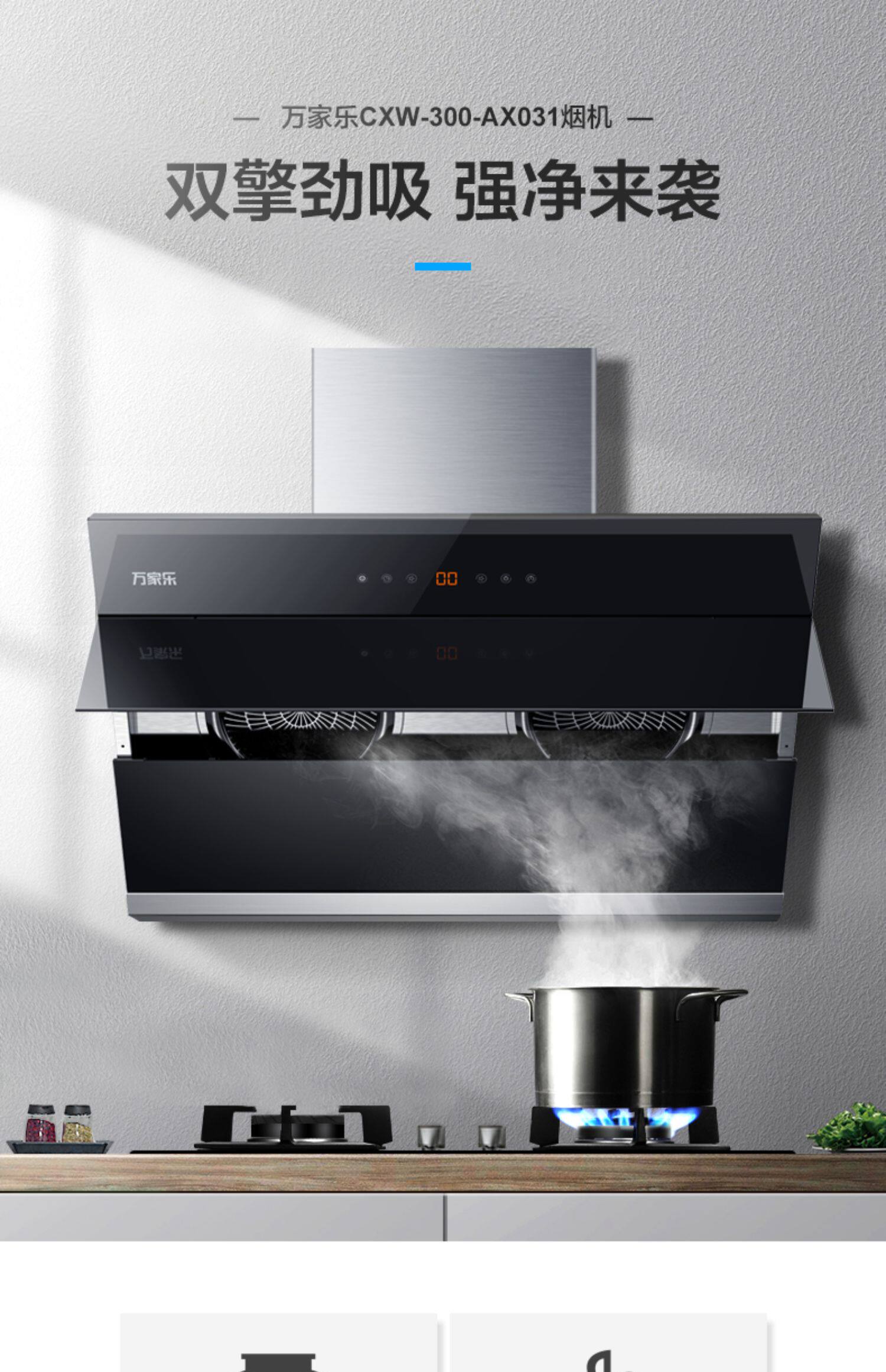 Wanjiale Ax031 Smoke Suite рядом с всасыванием всасывающей ассортимент газовой плита газообразной набор еда дома кухонная флагманская флагманская магазин