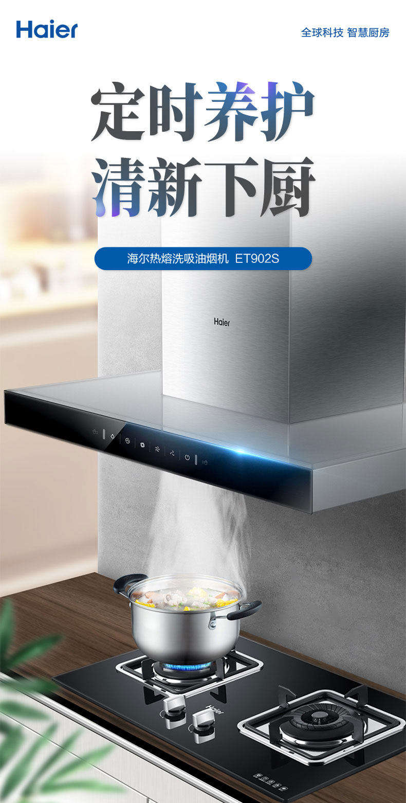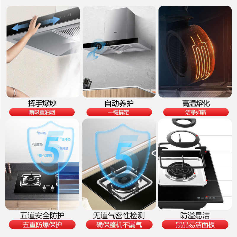 Официальный флагман Haier ET902S Большой всасывающий капюшон капюшон с капюшоном с газовой плитой с кухонной кухонной комбинацией кухни на кухне