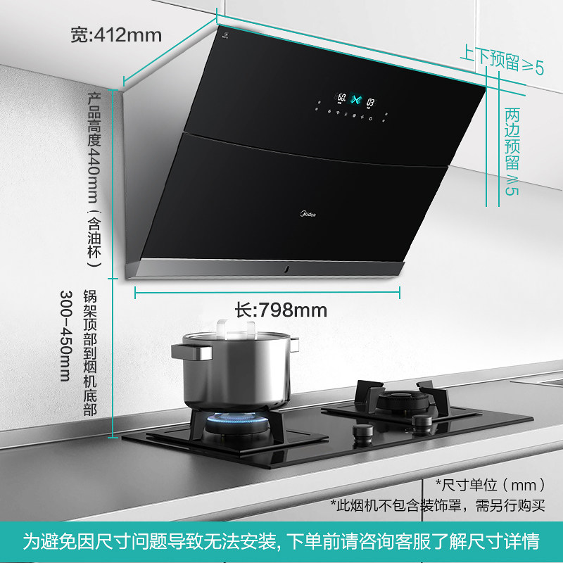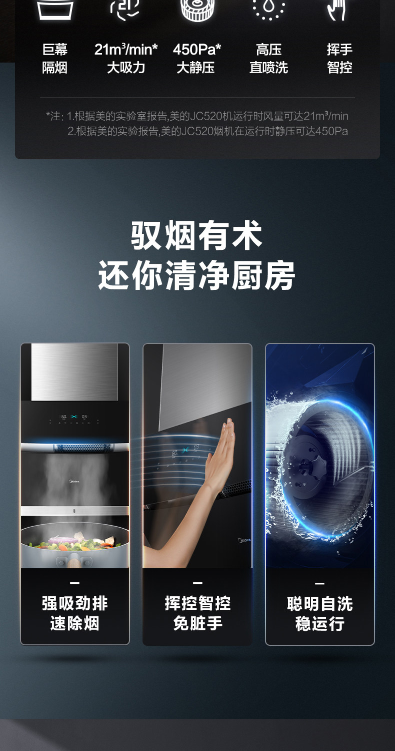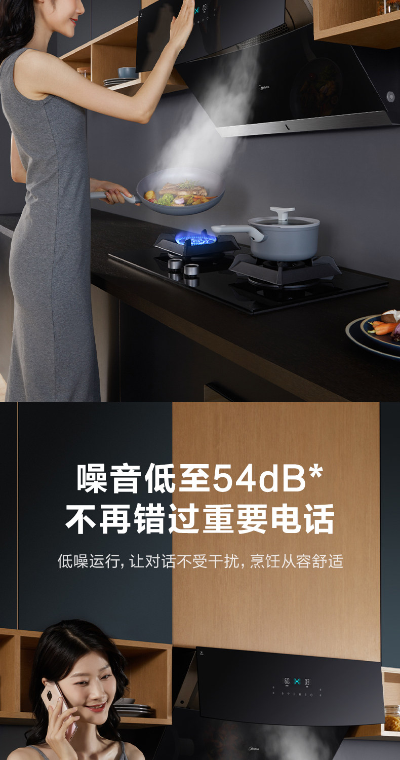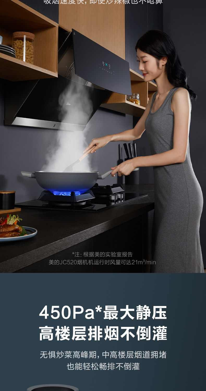 Midea JC520 Smart Home Appliance размахивает руками, чтобы сосать газовую плиту с капюшоном.