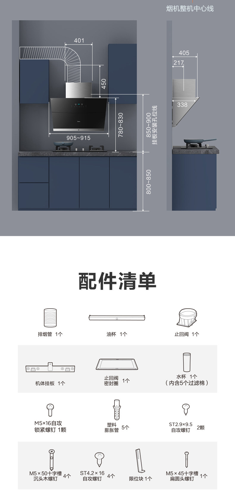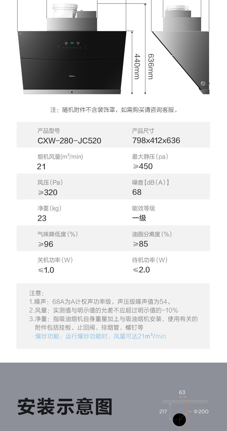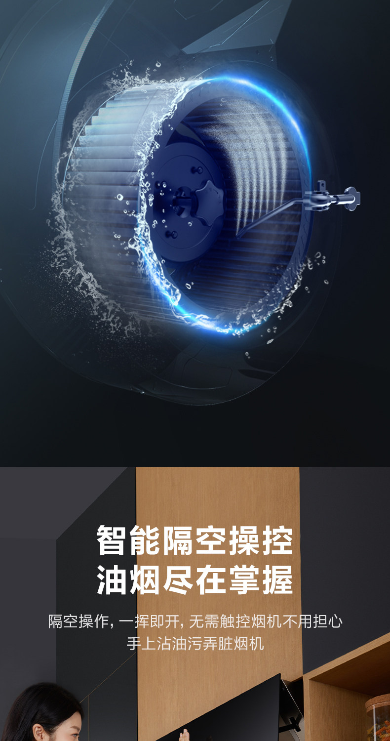 Midea JC520 Smart Home Appliance размахивает руками, чтобы сосать газовую плиту с капюшоном.
