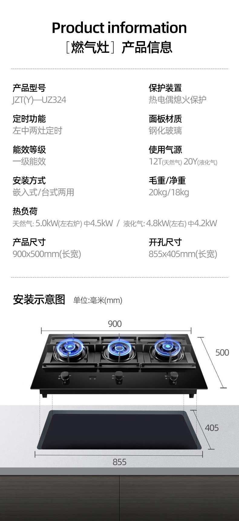 Youmeng UZ324 Трехногласная печь встроенная газовая плита сжиженная газовая плита