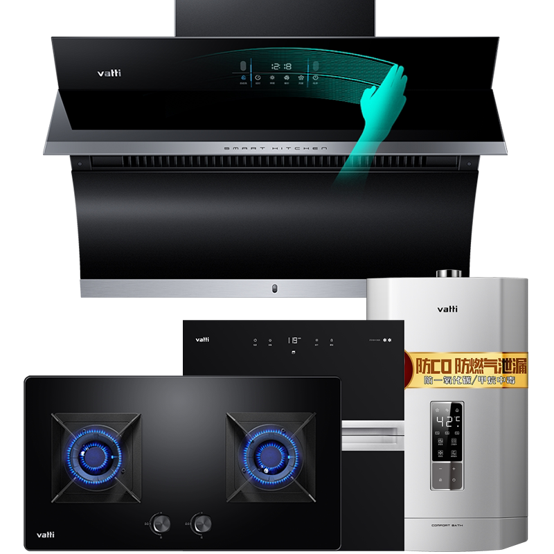 Vantage Smoking Hood, пакет газовой плиты Большой всасывающий мощность домохозяйственная водонагреватель Дезинфекция шкаф для кухни с тремя кухнями
