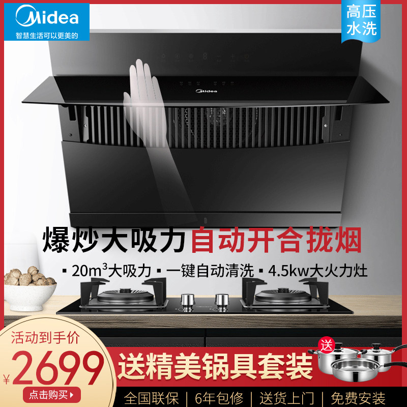 Midea J57 боковая всасываемая самостоятельная вытяжка с газовой плитой, набор печей, большая всасывающая мощность мудрость