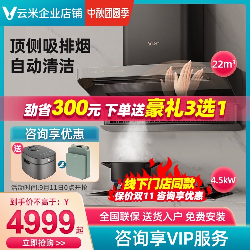 Yunmi Cross3 табачная плита набор 22 м³ Большая всасывающая мощность автоматическая очистка интеллектуальная комбинация скорта для вытяжкой