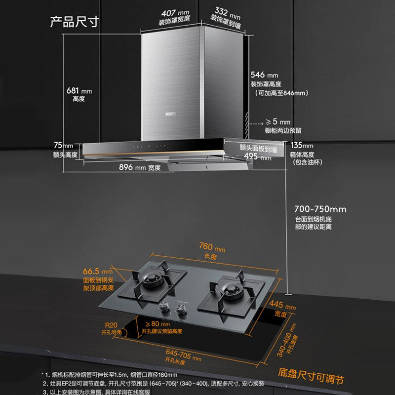 Colmo всасывание дымовая газовая плита установлена на кухонная плита, набор официального флагмана TE6+EF2