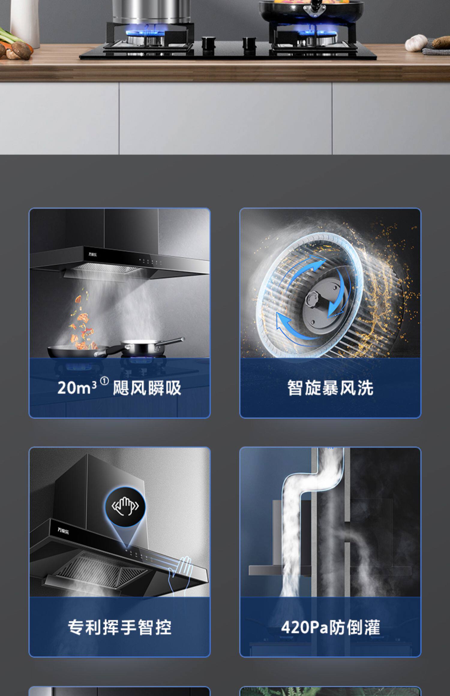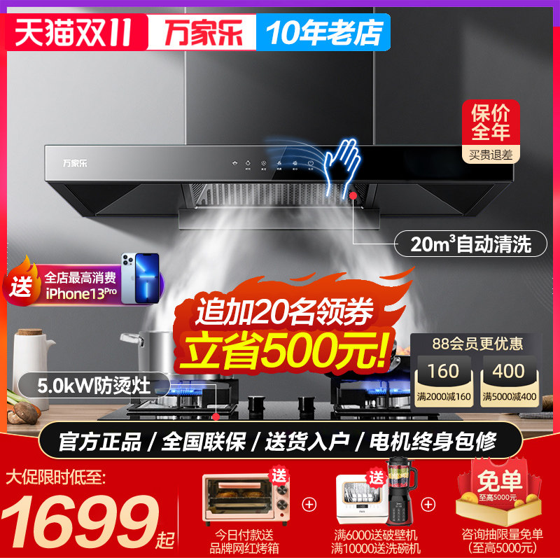 Wanjiale at051 Top Susction Daring Daring Good Gas Devic Device Three -Piece Fiece of European -стиль дымовой плиты горячие костюмы