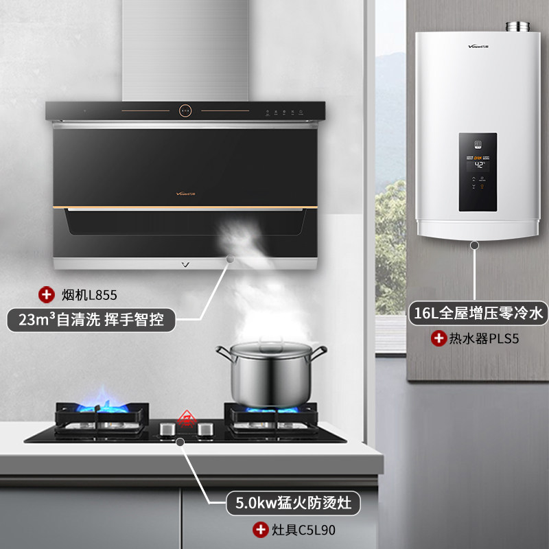 Wanhe насосной газовой плита Home Kitchen Kitchen 7 -Character вытяжной плиты Комбинация водонагревателя набор L855