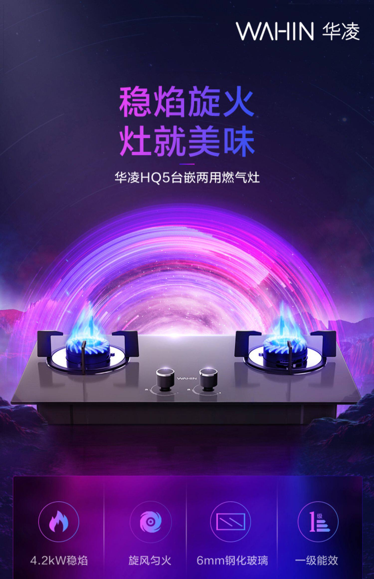 华凌 Газовая плита HQ5 Natural Gas L -q -quictor встроенный настольный компьютер с двойным использованием энергии, способствующей энергии, газовая двойная печь HQ9