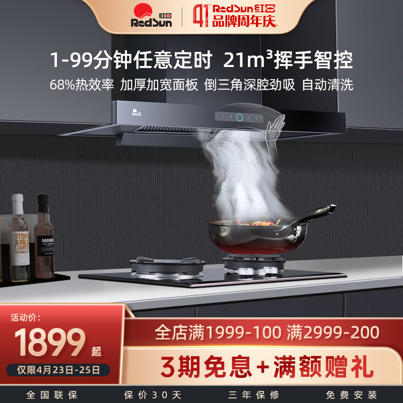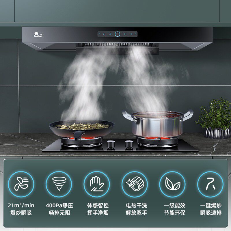Красный день сосание поджаривания с капюшоном, когда газовая плита кухня домашняя дымовая плита набор TSEU07+EM618B