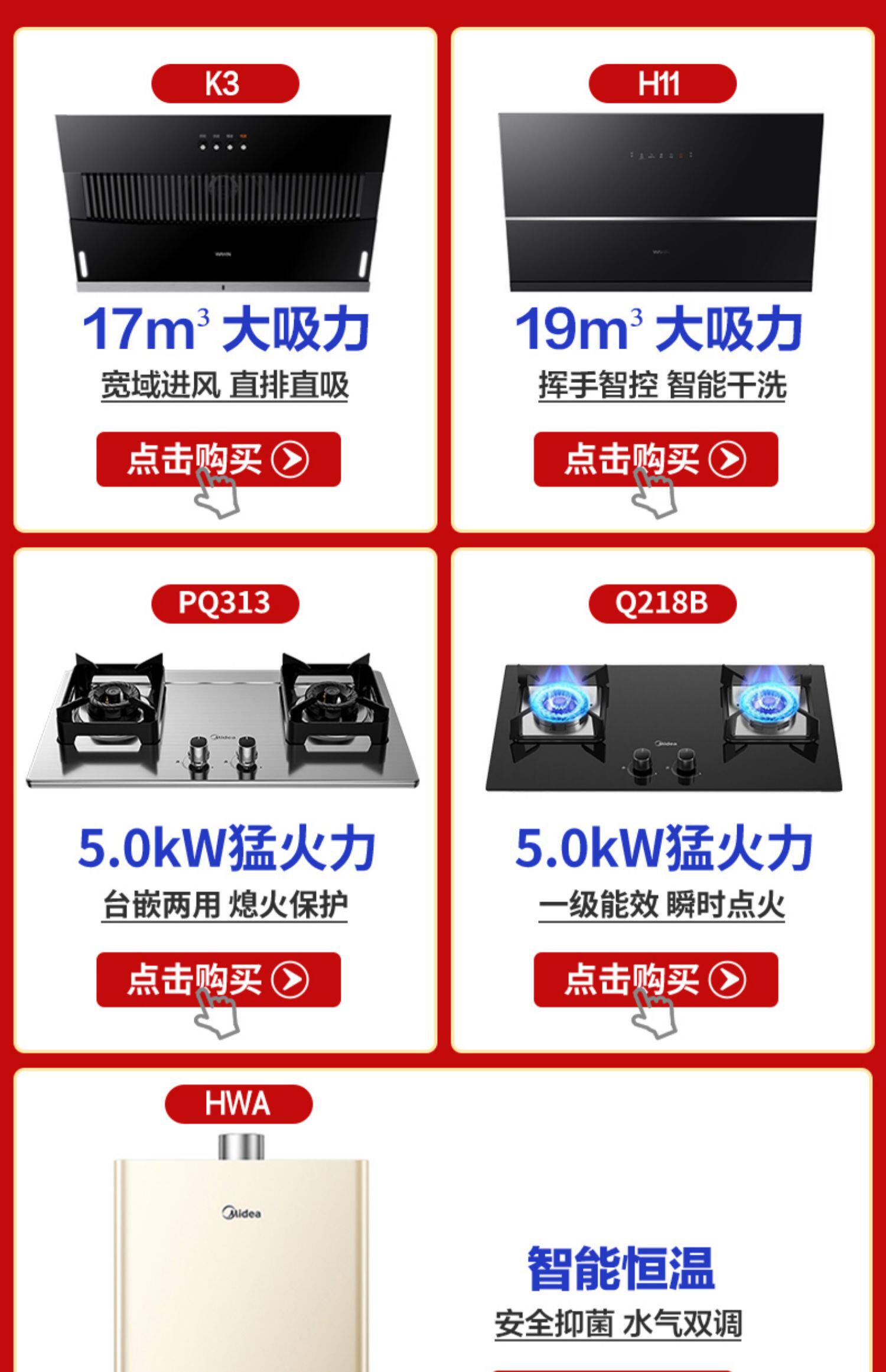 Midea Range Good Plicor Set Sigarette Sigarette Set Kitchen Three -Piece Comminate of Automatic Maring Machine