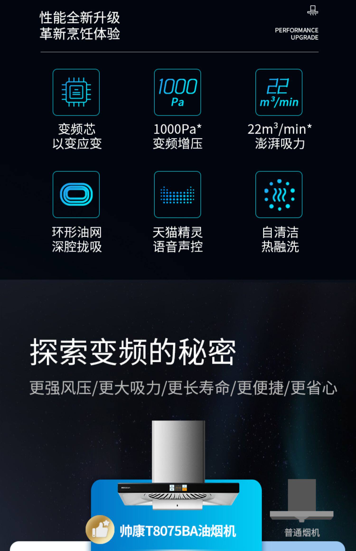 Новый продукт Shuaikang T8075BA в европейском стиле большой всасывающий инвертор с капюшоном с капюшоном комбинация комбинация официальный флагман