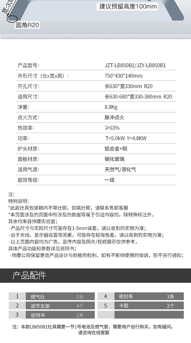 Shuaikang y8273 Верхний двойной строк с капюшоном газовой плиты Комбинированная набочная насосная насосная машина набор 7 -формированных 25