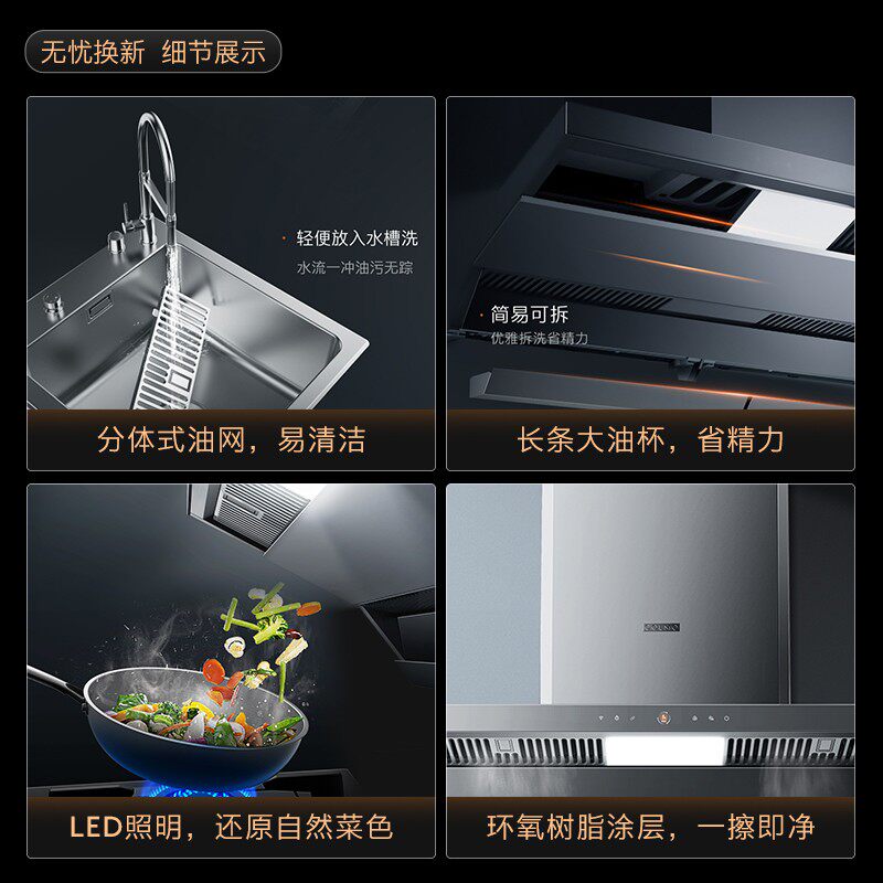 COLMO [Бронирование в магазине] Верхняя боковая вытяжка с двойным всасыванием, газовая плита, паровая мойка, 27 м³ / Fenjijing SV9